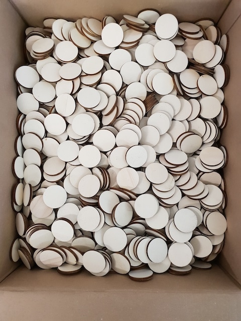 “Ik ben op zoek naar houten fiches van 3 mm dik en een doorsnede van 35 mm. Ik ben benieuwd of jullie dit kunnen maken en zo ja, tegen welke prijs. Het zou gaan om 1000 stuks of 3000 stuks. Vriendelijke groet,”